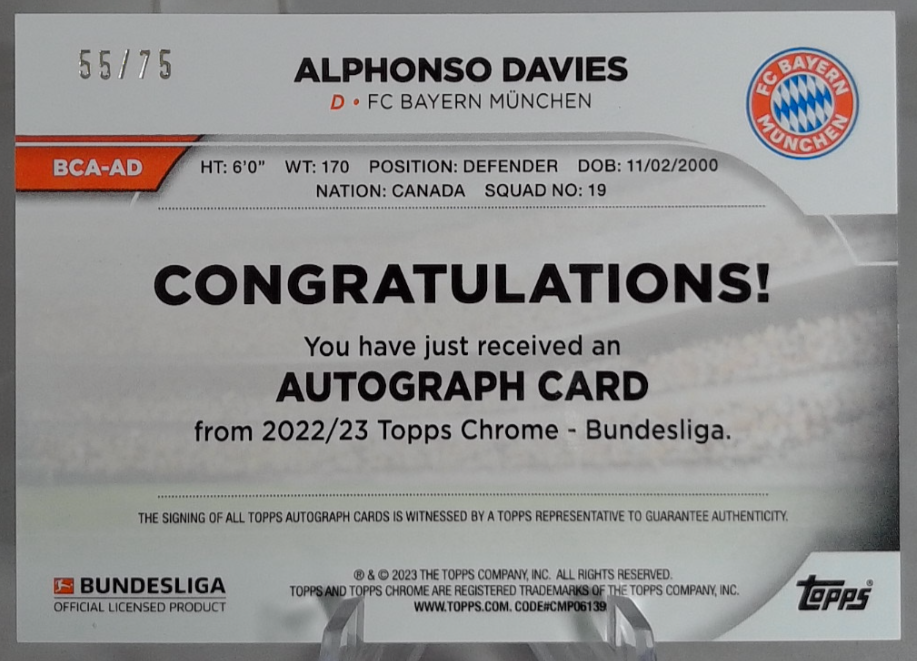 Davies topps chrome Auto /75