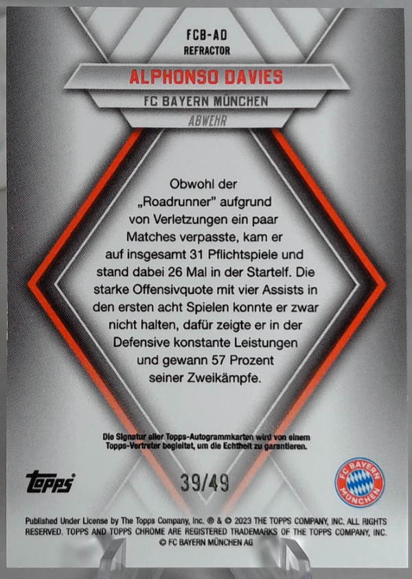 Alphonso Davies On Card Auto /49 topps chrome